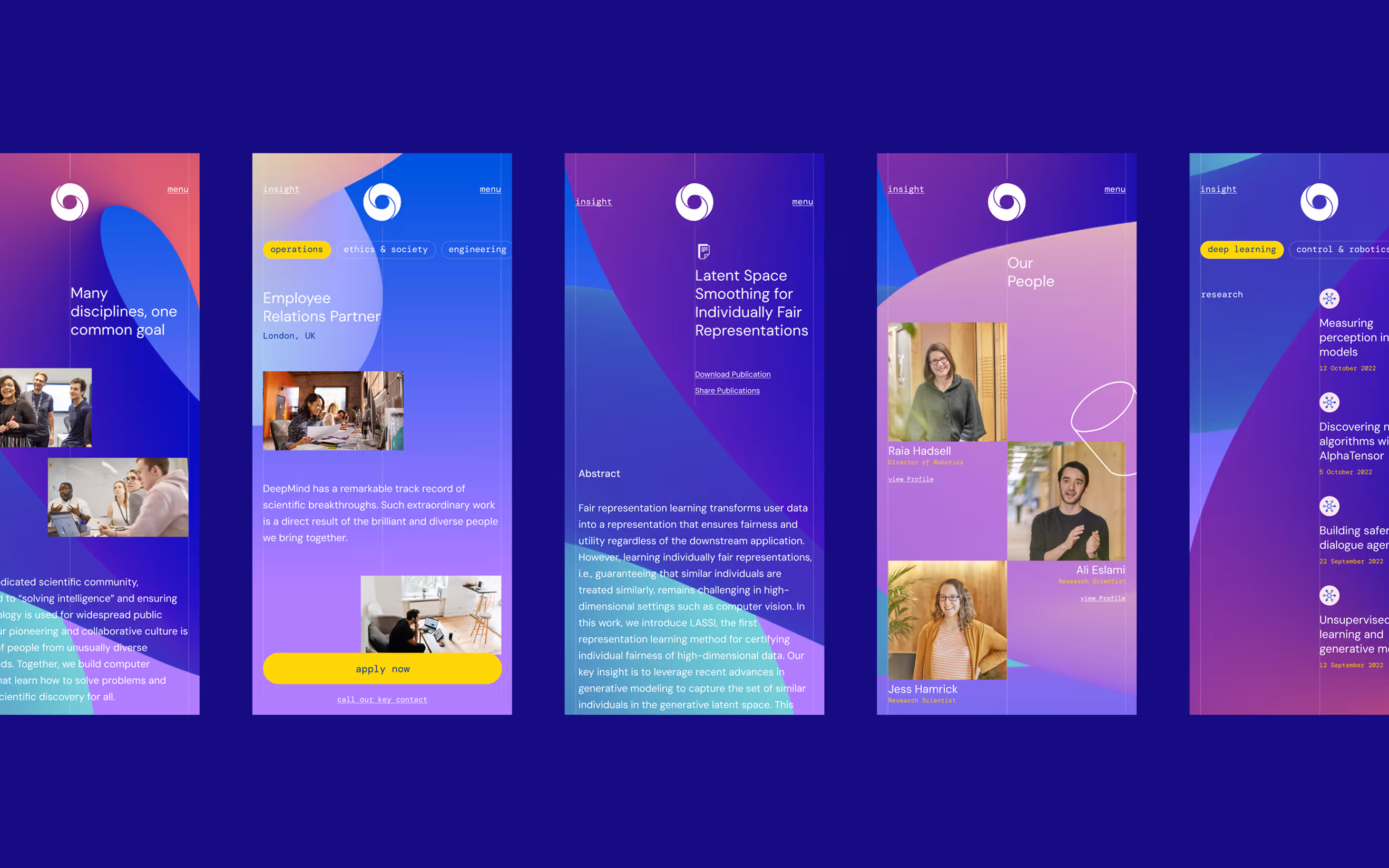 We moved decisively away from the muted, overly technical aesthetic and introduced a vibrant, energetic visual language. This better reflects the spirit of innovation and pioneering that lies at the core of DeepMind.